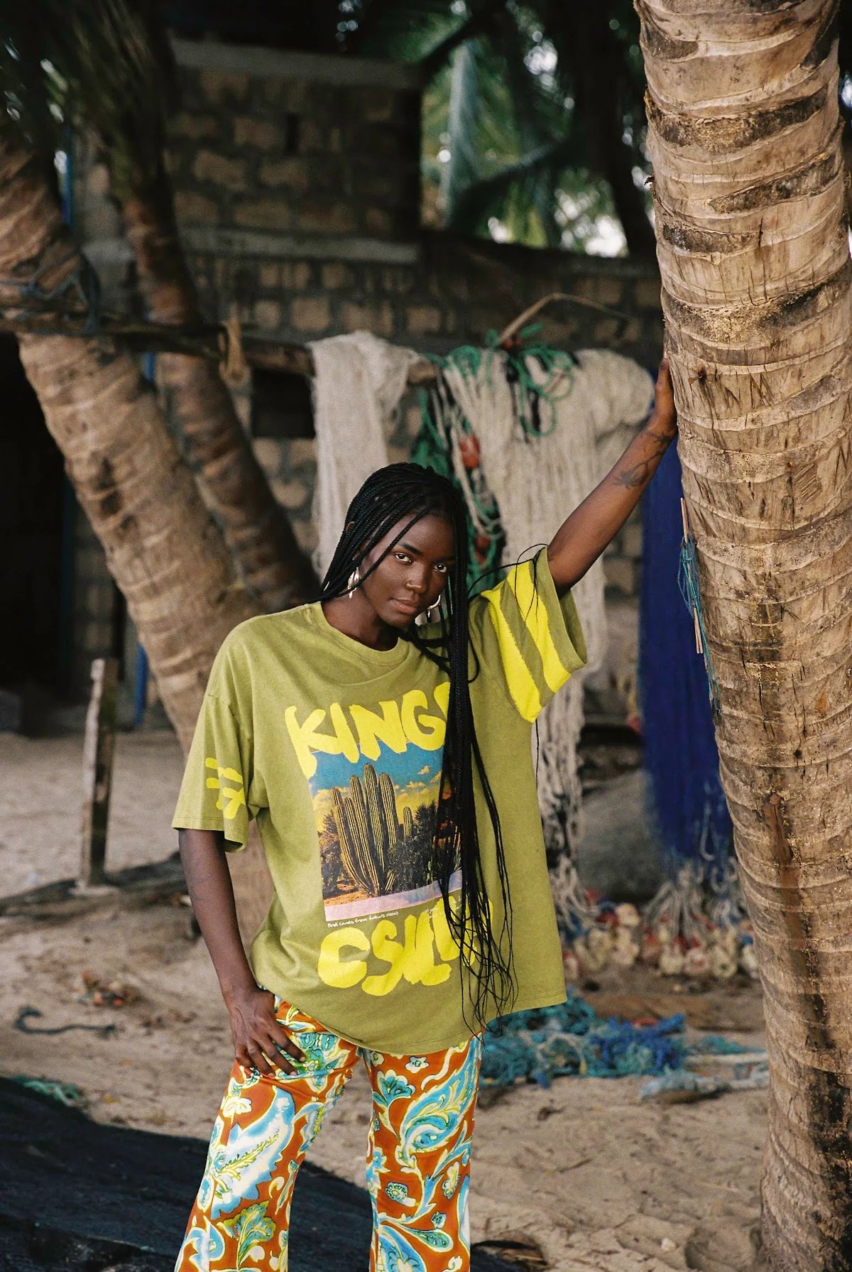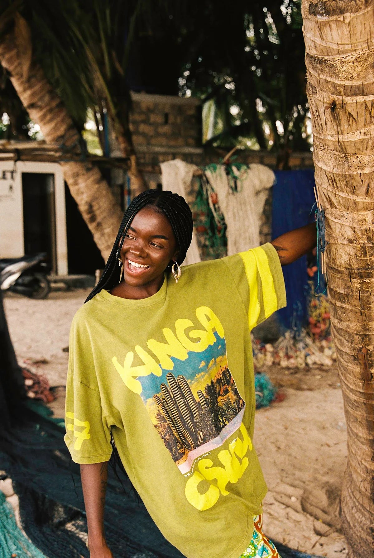 The Cacto Jardim Tee in lime green is a bold celebration of slow-made fashion and wanderlust spirit. This oversized graphic tee features an artful collage of desert landscapes, capturing the essence of sun-soaked adventures and effortless resort style. With its relaxed silhouette and eye-catching print, this handcrafted piece transitions seamlessly from beachside mornings to evening gatherings.